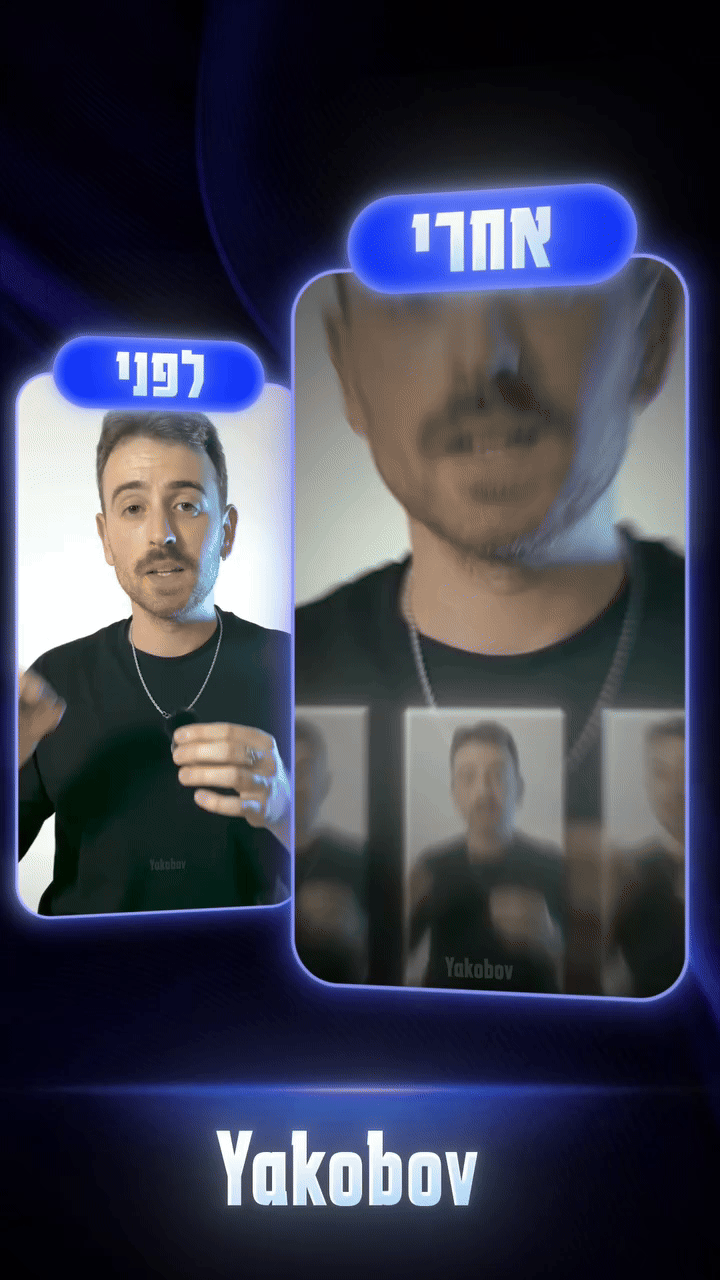 ובעזרת עריכה מקצועים שתגרום לך להיראות מצוין בפריים, להפסיק לבזבז זמן על עריכה, ולקבל סרטונים מקצועיים